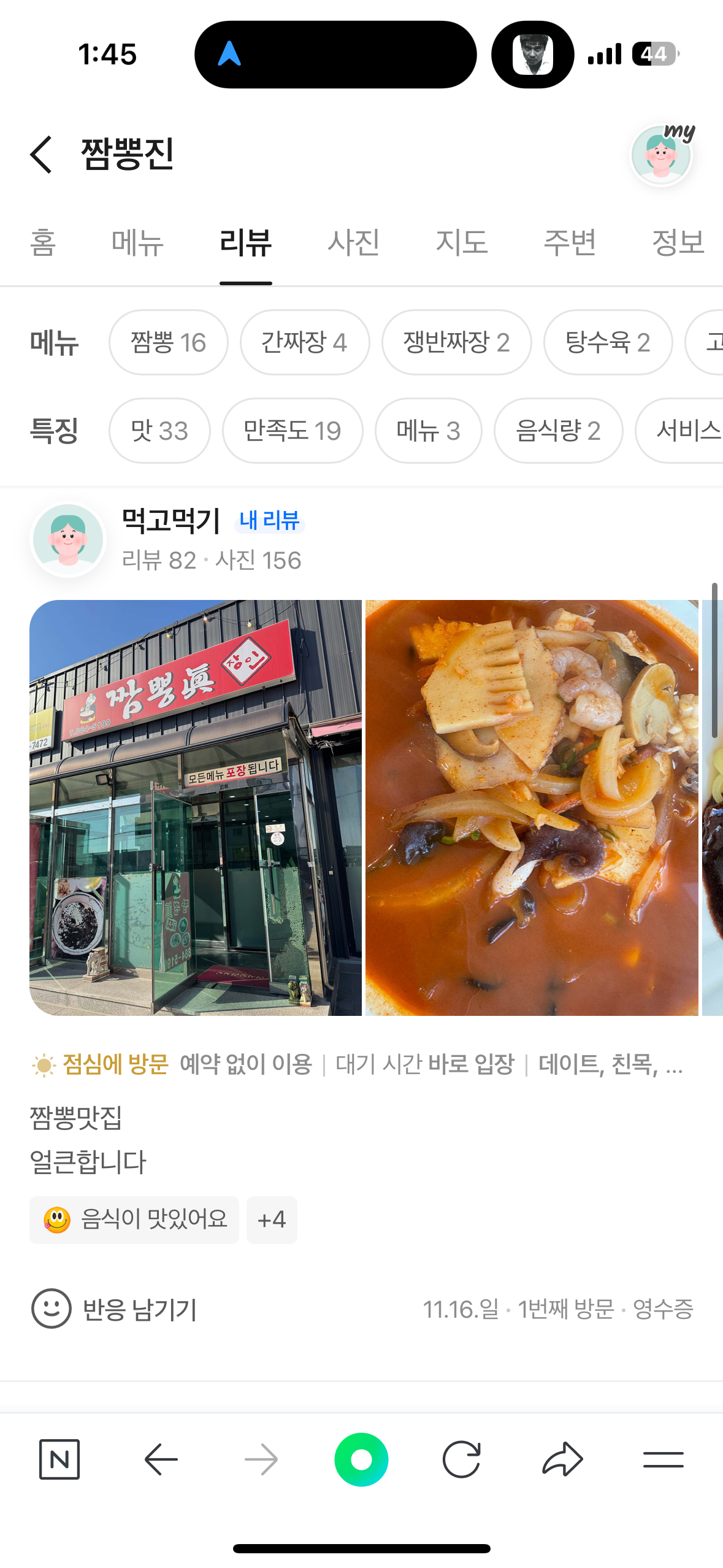 * 방문한 곳(상호명, 주소, 연락처) : 짬뽕진